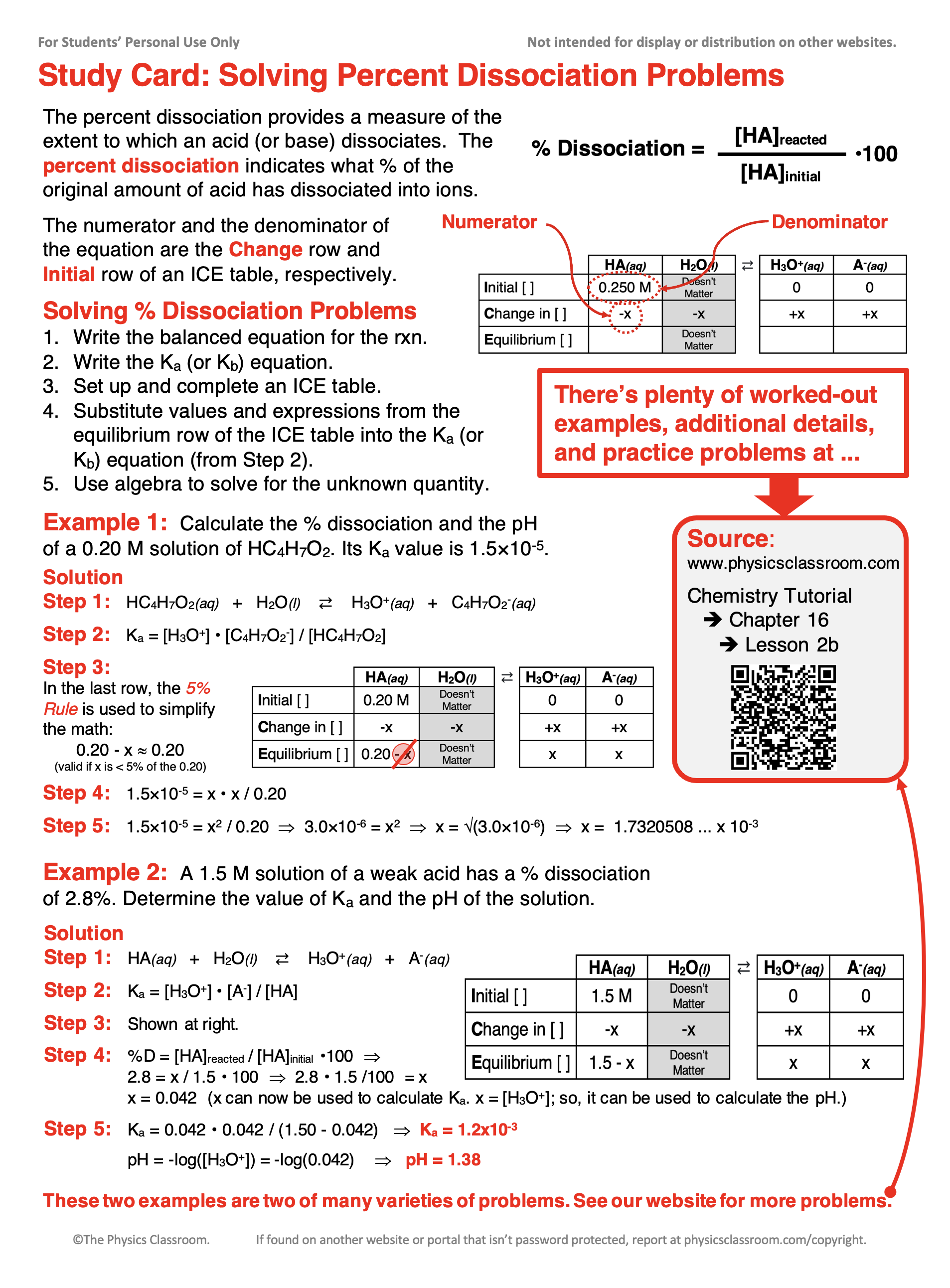 Use the following questions to practice the skill at solving percent dissociation problems. Tap the Check Answer buttons when ready.