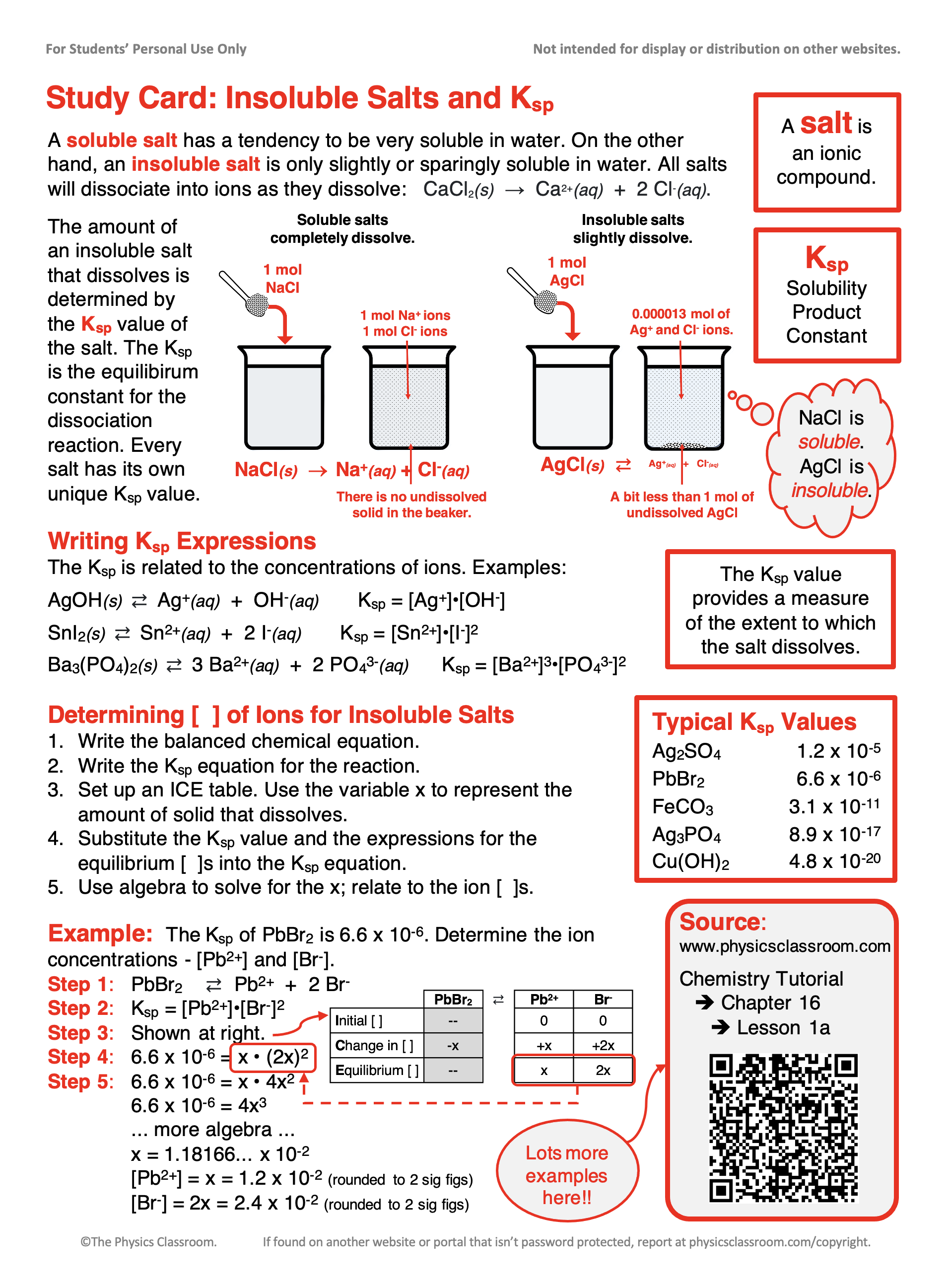 - Download our Study Card on Insoluble Salts and Ksp. Save it to a safe location and use it as a review tool.