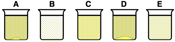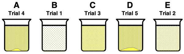 Match each beaker diagram below with one of the five trials.