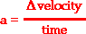 The average acceleration (a) of any object over a given interval of time (t) can be calculated using the equation