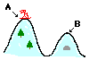 A skier glides from location A to location B across a friction free ice.