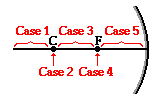 - Case 3: the object is located between the center of curvature (C) and the focal point (F)