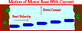 The effect of the wind upon the plane is similar to the effect of the river current upon the motorboat. If a motorboat were to head straight across a river (that is, if the boat were to point its bow straight towards the other side), it would not reach the shore directly across from its starting point. The river current influences the motion of the boat and carries it downstream. The motorboat may be moving with a velocity of 4 m/s directly across the river, yet the resultant velocity of the boat will be greater than 4 m/s and at an angle in the downstream direction. While the speedometer of the boat may read 4 m/s, its speed with respect to an observer on the shore will be greater than 4 m/s.