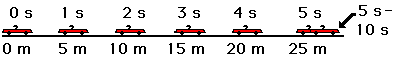 Consider a car moving with a constant velocity of +10 m/s for 5 seconds. The diagram below depicts such a motion.