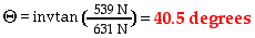 Now that the acceleration has been found, the angle of lean can be determined. As mentioned in the equation above, the angle of lean ("theta") can be determined from knowledge of the horizontal and vertical components of the contact force. The vertical component has already been calculated to be 539 N (equal to Fgrav). And as previously mentioned, the horizontal component would be equal to Fnet; this is shown below.