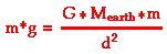 Now observe that the mass of the object - m - is present on both sides of the equal sign. Thus, m can be canceled from the equation. This leaves us with an equation for the acceleration of gravity.