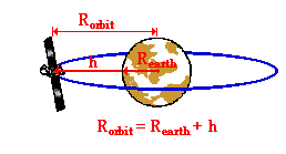 is the height (h) of the satellite above the surface of the earth. Yet there is no equation with the variable h. The solution then involves first finding the radius of orbit and using this R value and the R of the earth to find the height of the satellite above the earth. As shown in the diagram at the right, the radius of orbit for a satellite is equal to the sum of the earth's radius and the height above the earth. The radius of orbit can be found using the following equation: