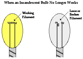 With an understanding of this first requirement of an electric circuit, it becomes clear what is happening when an incandescent light bulb in a table lamp or floor lamp no longer works. Over time, a light bulb filament becomes weak and brittle can often break or simply become loose. When this occurs, the circuit is opened and a closed conducting loop no longer exists. Without a closed conducting loop, there can be no circuit, no charge flow and no lit bulb. Next time you find a broken bulb in a lamp, safely remove it and inspect the filament. Often times, shaking the removed bulb will cause a rattle; the filament has likely fallen off the supporting posts that it normally rests upon to the bottom of the glass globe. When shook, you will hear the rattle of the filament hitting the glass globe.
