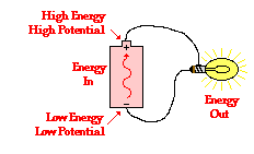 The second requirement of an electric circuit that is common in each of the successful attempts demonstrated above is that there must be an electric potential difference across the two ends of the circuit. This is most commonly established by the use of an electrochemical cell, a pack of cells (i.e., a battery) or some other energy source. It is essential that there is some source of energy capable of increasing the electric potential energy of a charge as it moves from the low energy terminal to the high energy terminal. As discussed in Lesson 1, it takes energy to move a positive test charge against the electric field. As applied to electric circuits, the movement of a positive test charge through the cell from the low energy terminal to the high energy terminal is a movement against the electric field. This movement of charge demands that work be done on it in order to lift it up to the higher energy terminal. An electrochemical cell serves the useful role of supplying the energy to do work on the charge in order to pump it or move it through the cell from the negative to the positive terminal. By doing so, the cell establishes an electric potential difference across the two ends of the electric circuit. (The concept of an electric potential difference and its application to electric circuits was discussed in detail in Lesson 1.)