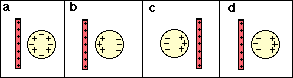 2. Which of the diagrams below best represents the charge distribution on a metal sphere when a positively charged plastic tube is placed nearby?