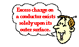 We have previously shown in Lesson 4 that any charged object - positive or negative, conductor or insulator - creates an electric field that permeates the space surrounding it. In the case of conductors there are a variety of unusual characteristics about which we could elaborate. Recall from Lesson 1 that a conductor is material that allows electrons to move relatively freely from atom to atom. It was emphasized that when a conductor acquires an excess charge, the excess charge moves about and distributes itself about the conductor in such a manner as to reduce the total amount of repulsive forces within the conductor. We will explore this in more detail in this section of Lesson 4 as we introduce the idea of electrostatic equilibrium. Electrostatic equilibrium is the condition established by charged conductors in which the excess charge has optimally distanced itself so as to reduce the total amount of repulsive forces. Once a charged conductor has reached the state of electrostatic equilibrium, there is no further motion of charge about the surface.