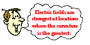 A third characteristic of conducting objects at electrostatic equilibrium is that the electric fields are strongest at locations along the surface where the object is most curved. The curvature of a surface can range from absolute flatness on one extreme to being curved to a blunt point on the other extreme.