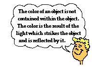 The color of the objects that we see is largely due to the way those objects interact with light and ultimately reflect or transmit it to our eyes. The color of an object is not actually within the object itself. Rather, the color is in the light that shines upon it and is ultimately reflected or transmitted to our eyes. We know that the visible light spectrum consists of a range of frequencies, each of which corresponds to a specific color. When visible light strikes an object and a specific frequency becomes absorbed, that frequency of light will never make it to our eyes. Any visible light that strikes the object and becomes reflected or transmitted to our eyes will contribute to the color appearance of that object. So the color is not in the object itself, but in the light that strikes the object and ultimately reaches our eye. The only role that the object plays is that it might contain atoms capable of selectively absorbing one or more frequencies of the visible light that shine upon it. So if an object absorbs all of the frequencies of visible light except for the frequency associated with green light, then the object will appear green in the presence of ROYGBIV. And if an object absorbs all of the frequencies of visible light except for the frequency associated with blue light, then the object will appear blue in the presence of ROYGBIV.