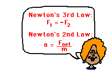 Many observers of this interaction have difficulty believing that the man experienced a backward force. "After all," they might argue, "the man did not move backward." Such observers are presuming that forces cause motion. In their minds, a backward force on the male skater would cause a backward motion. This is a common misconception that has been addressed elsewhere in The Physics Classroom. Forces cause acceleration, not motion. The male figure skater experiences a backwards force that causes his backwards acceleration. The male skater slows down while the woman skater speeds up. In every interaction (with no exception), there are forces acting upon the two interacting objects that are equal in magnitude and opposite in direction.