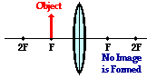 When the object is located at the focal point, no image is formed. As discussed earlier in Lesson 5, the refracted rays neither converge nor diverge. After refracting, the light rays are traveling parallel to each other and cannot produce an image.