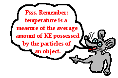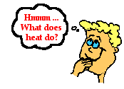 For some students, the very question what does heat do? is confusing. Think about the question a moment. Does the question (not just the answer) confuse you? Confusion over the question is sometimes caused by misconceptions about what heat is. The reason for the lengthy discussions in Lesson 1 was to provide a solid conceptual foundation for understanding the mathematics of Lesson 2. If the question is confusing, you might want to review Lesson 1 or at least review the discussion pertaining to What is Heat? In Lesson 1, it was emphasized that heat is not something that is contained in an object. Objects do not contain heat. Objects, which are made of atoms, molecules and ions, contain energy. Heat is the transfer of energy from an object to its surroundings or to an object from its surroundings. So the question being asked on this page is what does this heat do to the object and to the surroundings when it is transferred? Like many questions in physics, it is a simple answer with deep meaning. Simple answers with deep meaning always exercise the brain. So put on your thinking cap and let's get to the answer.