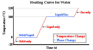 The diagram below depicts the so-called heating curve for the water. The heating curve represents the changes in temperature with respect to time for a sample of matter (such as the water) to which heat is transferred.