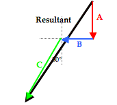 This Pythagorean approach is a useful approach for adding any two vectors that are directed at right angles to one another. A right triangle has two sides plus a hypotenuse; so the Pythagorean theorem is perfect for adding two right angle vectors. But there are limits to the usefulness of the Pythagorean theorem in solving vector addition problems. For instance, the addition of three or four vectors does not lead to the formation of a right triangle with two sides and a hypotenuse. So at first glance it may seem that it is impossible to use the Pythagorean theorem to determine the resultant for the addition of three or four vectors. Furthermore, the Pythagorean theorem works when the two added vectors are at right angles to one another - such as for adding a north vector and an east vector. But what can one do if the two vectors that are being added are not at right angles to one another? Is there a means of using mathematics to reliably determine the resultant for such vector addition situations? Or is the student of physics left to determining such resultants using a scaled vector diagram? Here on this page, we will learn how to approach more complex vector addition situations by combining the concept of vector components (discussed earlier) and the principles of vector resolution (discussed earlier) with the use of the Pythagorean theorem (discussed earlier).