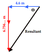 The direction of the resulting displacement can be determined by constructing the final triangle from the components of the resultant. The components of the resultant are simply the sum the east-west and north-south components. Once done, SOH CAH TOA is used to determine the angle that the resultant makes with a nearby axis. The diagram is shown at the right. The angle labeled as theta (Θ) is the angle between the resultant vector and the west axis. This angle can be calculated as follows: