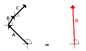 In all such cases, the resultant vector (whether a displacement vector, force vector, velocity vector, etc.) is the result of adding the individual vectors. It is the same thing as adding A + B + C + ... . "To do A + B + C is the same as to do R." As an example, consider a football player who gets hit simultaneously by three players on the opposing team (players A, B, and C). The football player experiences three different applied forces. Each applied force contributes to a total or resulting force. If the three forces are added together using methods of vector addition (discussed earlier), then the resultant vector R can be determined. In this case, to experience the three forces A, B and C is the same as experiencing force R. To be hit by players A, B, and C would result in the same force as being hit by one player applying force R. "To do A + B + C is the same as to do R." Vector R is the same result as vectors A + B + C!!