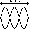 3. The string at the right is 6.0 meters long and is vibrating as the third harmonic. The string vibrates up and down with 45 complete vibrational cycles in 10 seconds. Determine the frequency, period, wavelength and speed for this wave.