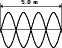 4. The string at the right is 5.0 meters long and is vibrating as the fourth harmonic. The string vibrates up and down with 48 complete vibrational cycles in 20 seconds. Determine the frequency, period, wavelength and speed for this wave.