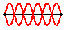 The pattern for the first harmonic reveals a single antinode in the middle of the rope. This antinode position along the rope vibrates up and down from a maximum upward displacement from rest to a maximum downward displacement as shown. The vibration of the rope in this manner creates the appearance of a loop within the string. A complete wave in a pattern could be described as starting at the rest position, rising upward to a peak displacement, returning back down to a rest position, then descending to a peak downward displacement and finally returning back to the rest position. The animation below depicts this familiar pattern. As shown in the animation, one complete wave in a standing wave pattern consists of two loops. Thus, one loop is equivalent to one-half of a wavelength.