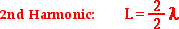 The second harmonic pattern consists of two anti-nodes. Thus, there are two loops within the length of the string. Since each loop is equivalent to one-half a wavelength, the length of the string is equal to two-halves of a wavelength. Put in the form of an equation: