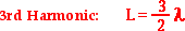 The third harmonic pattern consists of three anti-nodes. Thus, there are three loops within the length of the string. Since each loop is equivalent to one-half a wavelength, the length of the string is equal to three-halves of a wavelength. Put in the form of an equation: