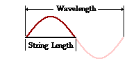 For the first harmonic, there is only one-half of a wave inside of the length of the string. So the length of the wave is two times longer than the length of the string (see diagram at right). Thus, the wavelength is 2.24 m. Now with speed and wavelength known, the frequency can be calculated.