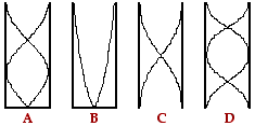 47. The diagrams above (Question #46) represent four different standing wave patterns in air columns of equal length. Which of the columns will produce the note having the highest pitch?